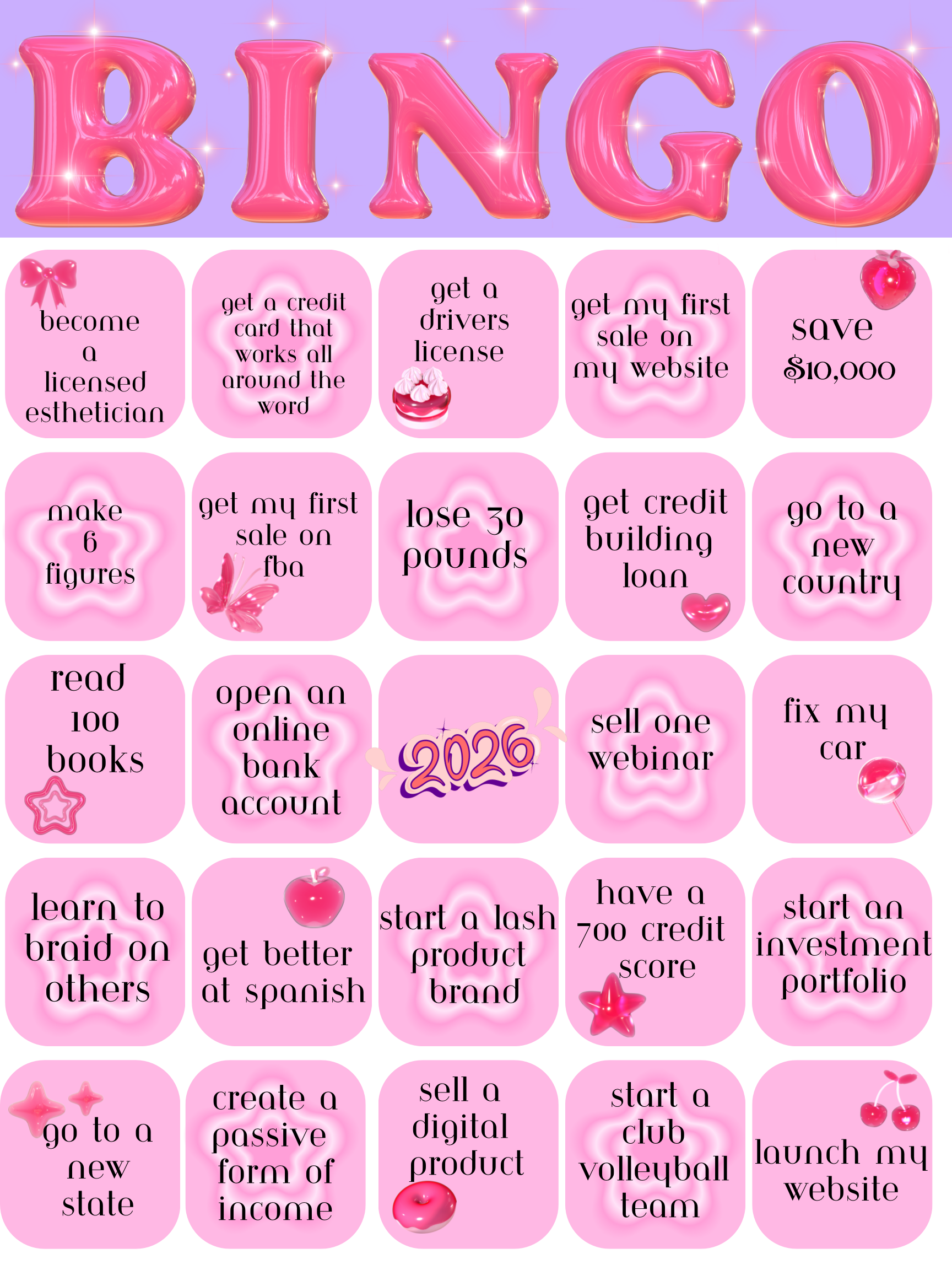 Fully Editable 2026 New Year's Resolution Bingo Card.